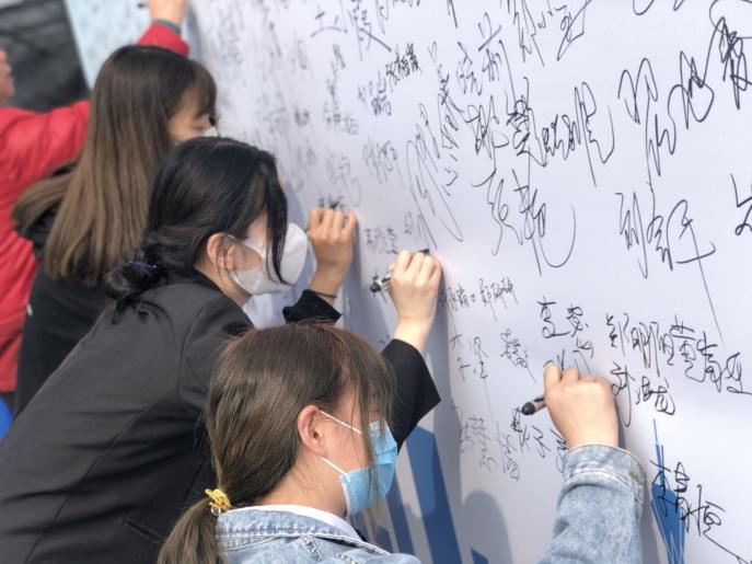 活动共分为四个环节,分别为介绍活动目的及意义,宣读《反电诈倡议书》,各行业代表发言和签名墙上进行签名。其中,九游体育团委书记张凡同志作为代表上台发言,并代表广大防电诈志愿者作出表态。