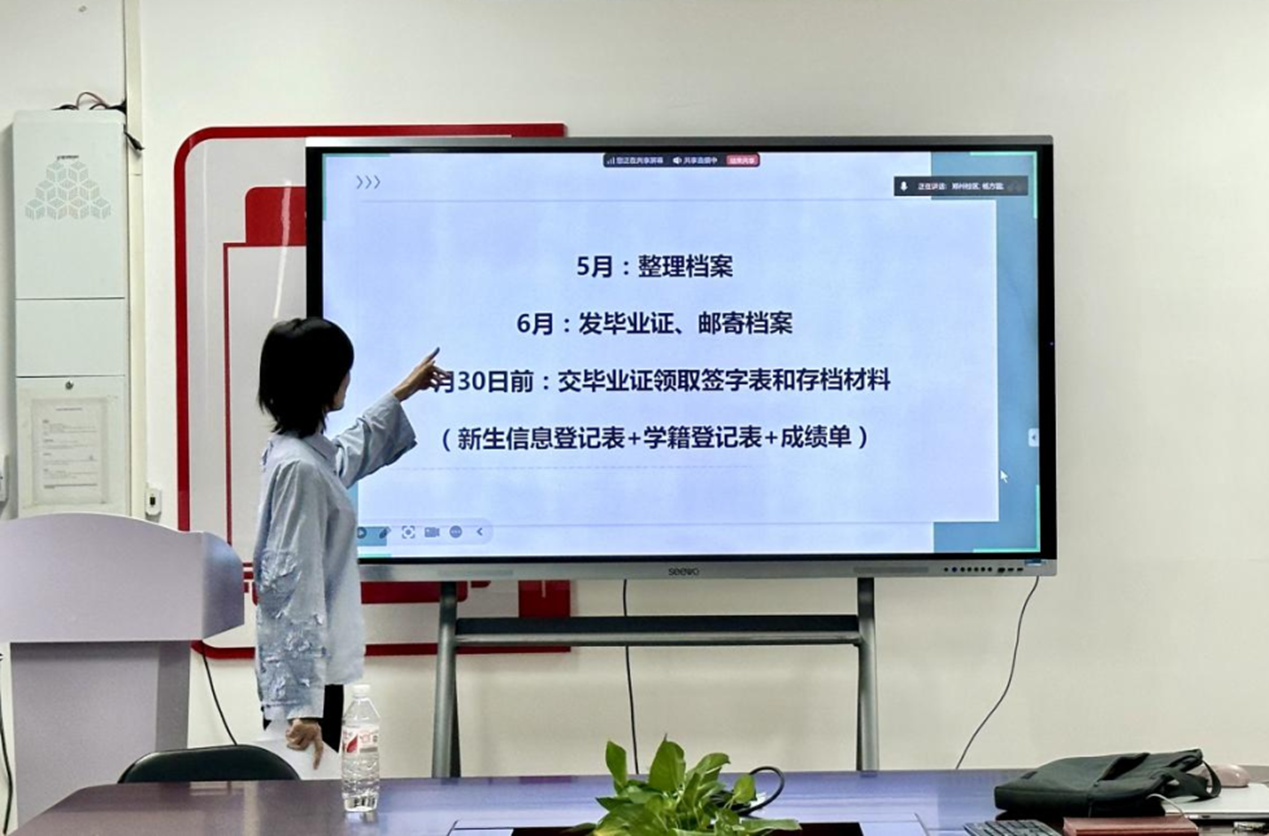 学籍管理员李晨详细解读了工作节点:目前全院学生已完成登录学信网自查信息,各班级于5月23日前完成毕业生档案材料整理,包括学籍登记表、成绩单、毕业生登记表等,并强调“档案材料需逐项核对,严禁多装漏装”。针对毕业证发放,李晨明确:“6月10日起,学院将联合纪委核验证书信息,实行‘一人一编号’签字领取制度,杜绝错发漏发。”此外,她提醒辅导员及时处理22名入伍学生的学籍保留与复学衔接工作。