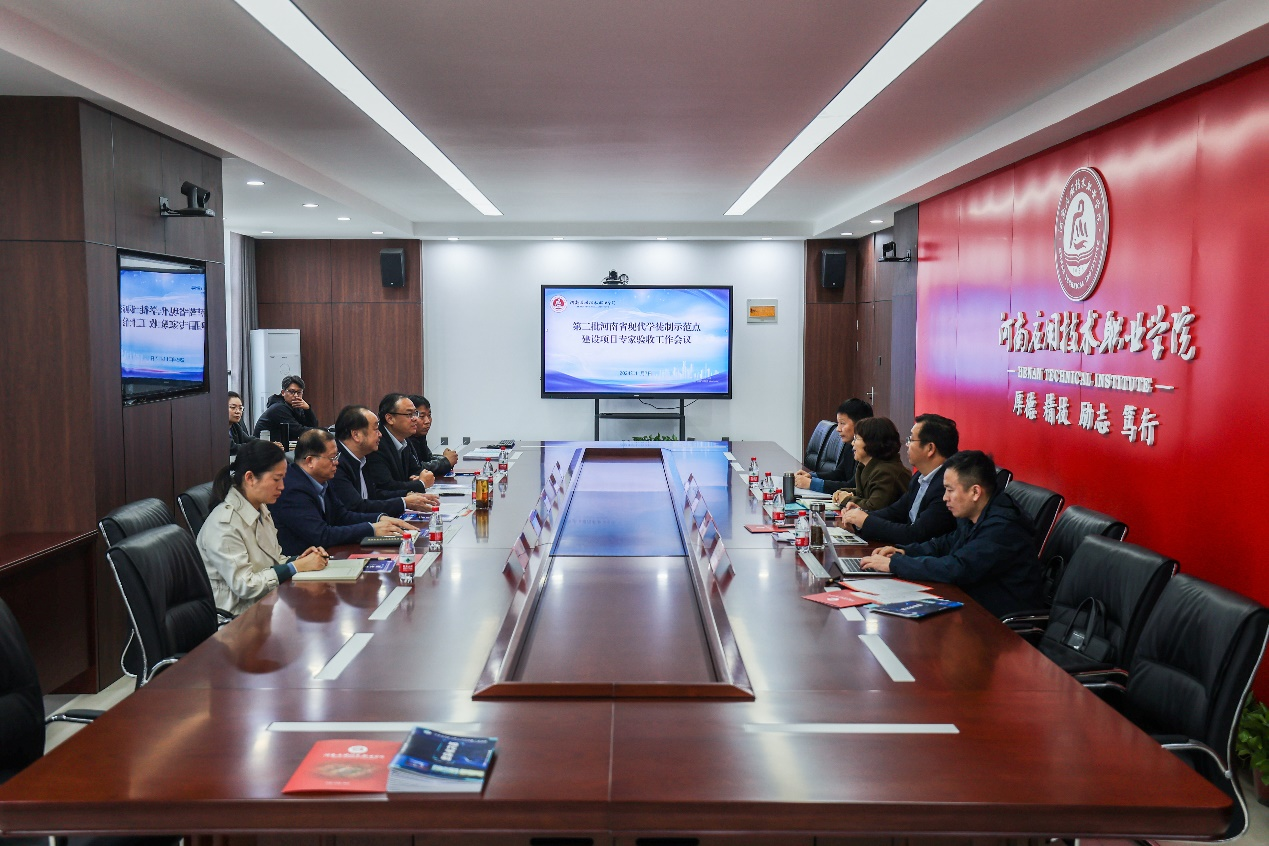 为进一步总结九游体育在现代学徒制项目中的实施成效,提炼经验,推动教育教学向更高质量发展,11月7日下午,“河南应用技术职业学院第二批河南省现代学徒制示范点建设项目专家验收会”在九游体育开封北院行政楼B318会议室举行。此次验收专家组成员有河南职业技术学院副校长肖珑、河南工业职业技术学院教务处处长杜恒、河南职业技术学院教务处副处长娄松涛和许昌职业技术学院教务处副处长马广礼,肖珑任组长。河南应用技术职业学院校长薄新党、副校长黄振中、教务处处长孙勇、信息工程学院院长王雷、校企合作与就业处副处长梁艳,教务处、信息工程学院教师及学生代表和相关企业人员代表参加会议。会议由副校长黄振中主持。