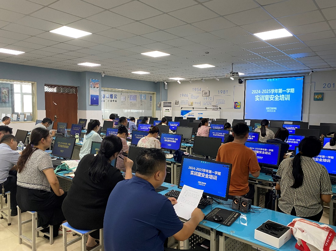 为深入贯彻党的二十届三中全会精神,认真落实习近平总书记做好安全生产工作的重要指示精神,确保学校实训室安全,保障全体师生人身安全和校园稳定,9月3日上午,信息工程学院院长王雷、副院长齐峰、夏丽珍,组织开封和郑州校区实训室管理员老师以及全体师生,进行了实训室安全教育和安全排查活动,现将本次安全教育与安全排查工作总结如下: