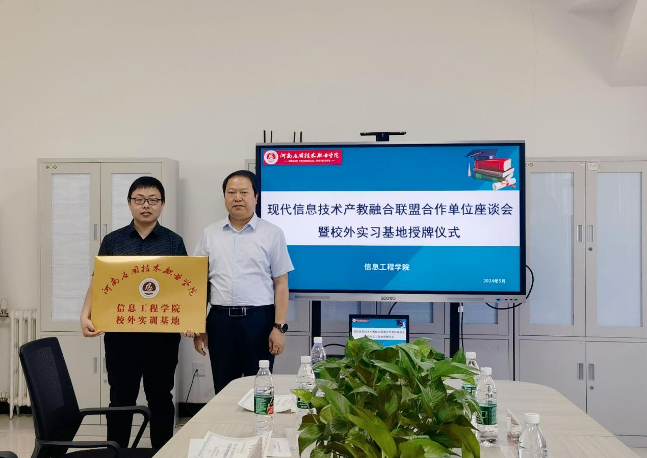 为深化产教融合,努力培养符合产业需要的高素质应用型、复合型、创新型人才,促进毕业生高质量就业,打造实践育人广阔平台,充分发挥基地在教学过程中的重要作用,5月17日,信息工程学院在开封校区北院教学楼C314为“北京标软信息技术有限公司”、“百智云(河南)人工智能科技有限责任公司”、“郑州慧牛网络科技有限公司”三家校外实训基地授牌,同时为“向心力信息技术股份有限公司”、“福建中锐网络股份有限公司”、“河南铸远教育科技有限公司”等10家现代信息技术产教融合发展联盟单位颁发了联盟证书。