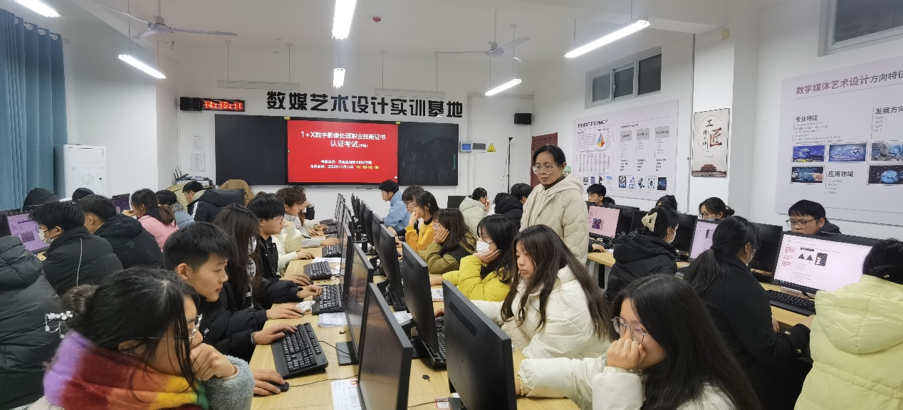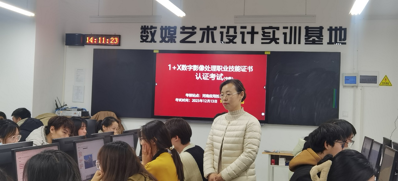 考场设置在开封校区的数媒艺术设计实训室和现代信息技术实训中心,机房管理员提前一天调试设备、测试网络、确保考试的顺利开展。监考老师认真查验了学生的身份证和准考证,全部参考。