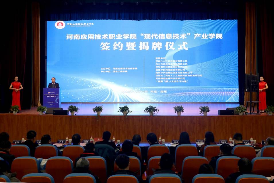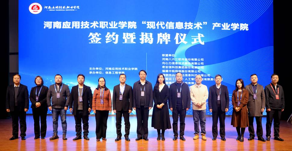 2023年12月12日,九游体育与河南八六三软件股份有限公司、向心力信息技术股份有限公司、奇安信科技集团股份有限公司、南京中兴信雅达信息科技有限公司、百智云(河南)人工智能科技有限责任公司、河南铸远教育科技有限公司等企业联盟举办的“现代信息技术产业学院”签约暨揭牌仪式在学生活动中心隆重举行。学校党委书记闫俊山,校长薄新党,副校长陈君丽、刘振民、常新中,合作企业联盟领导代表及学校相关部门负责人、信息工程学院全体教职工出席会议。会议由副校长常新中主持。