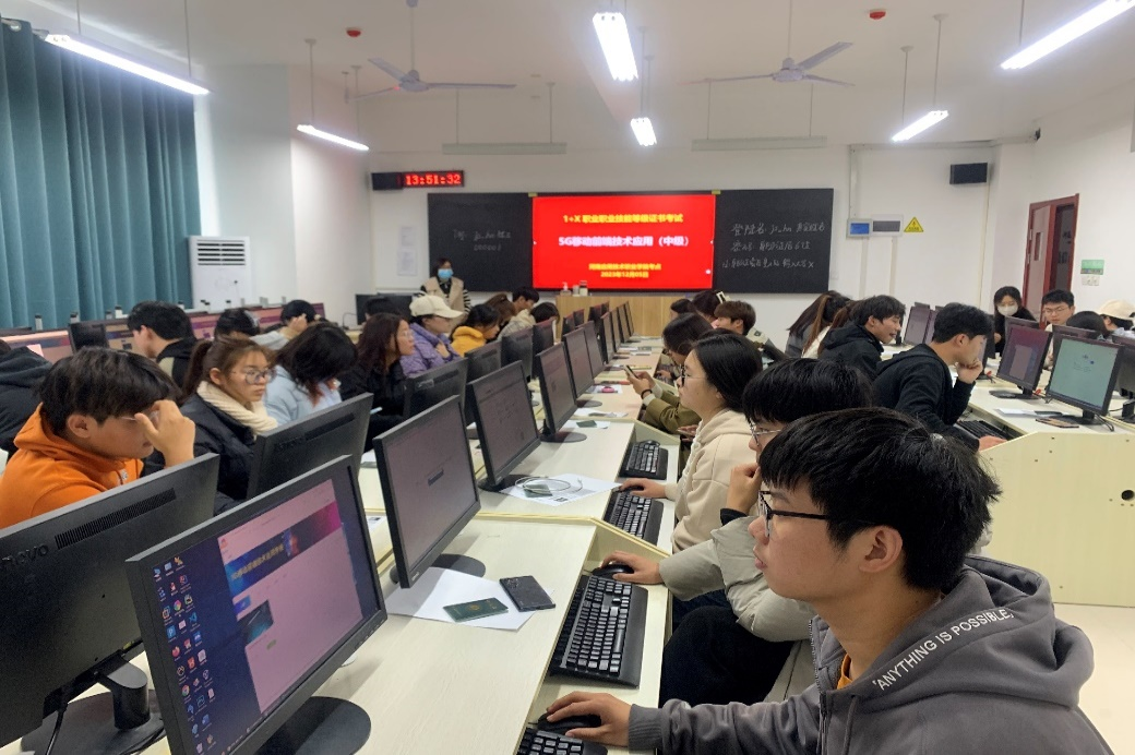 为深入贯彻落实《国家职业教育改革实施方案》,切实推进教育部“1+X证书制度”试点工作,改革创新人才培养和评价模式,提高育人质量。学校大力推行1+X证书制度,培养高素质技术技能型人才,在学校领导和相关部门的大力支持下,信息工程学院计算机应用技术专业多名教师取得了1+X证书培训教师证书及考评员资格证,并于2023年12月5日组织了第二批“1+X” 5G移动前端技术(中级)职业技能等级认证考试。
