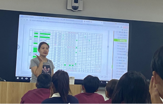大数据技术专业谢妞妞老师、现代移动通信技术专业任立锋老师、视觉传达设计专业张蔚老师分别从专业发展概况、专业人才培养目标、解读专业岗位要求、分析教学进程表、讲解学业规划、展示学生作品成果等多个方面开展专业教育。