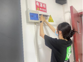 安全检查过程中,实训管理员老师检查了实训室内各种电气设备、消防设施和室内桌椅和教学设备的安全,对实训室内的灭火器和消防器材进行检查和维护,确保其在需要时能够正常使用。对强弱电线路进行全面排查,确保电线没有损坏、插座正常工作,并更换有问题的设备。
