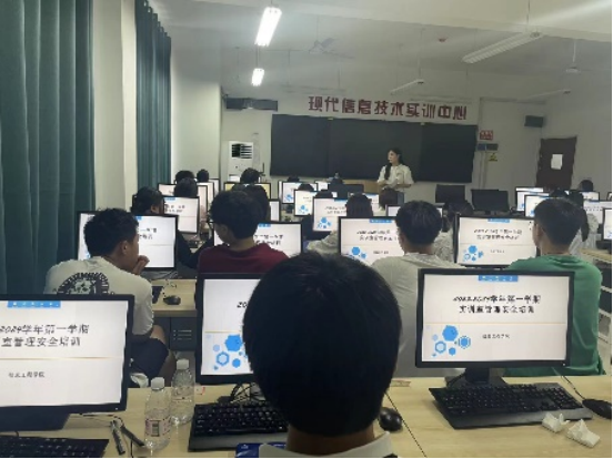 会后,学院安排了孙星、郭园、王欣慰、米楠、杨争威、刘瑞红、苏丽娟等实训管理员老师,对参与实训管理的勤工助学学生以及所带专业课班级学生进行了实训室安全的相关培训。