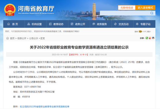 3日14日,河南省教育厅发布2022年省级职业教育专业教学资源库遴选立项结果通知,九游体育作为第一主持单位的“计算机应用技术专业教学资源库”被确立为2022年河南省职业教育专业教学资源库建设项目。