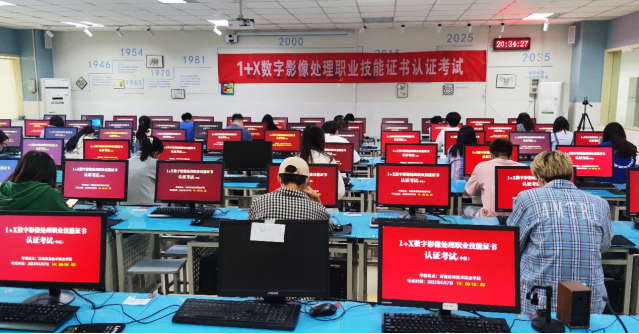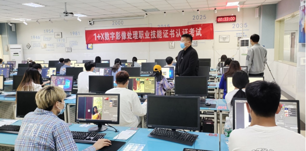 为贯彻落实《国家职业教育改革实施方案》《关于推动现代职业教育高质量发展的意见》文件精神,积极推进“学历证书+若干职业技能等级证书”制度试点工作,2022年5月7日下午,信息工程学院组织了动漫制作技术专业和视觉传播设计与制作专业20级100名学生参加了“1+X”数字影像处理职业技能等级证书考试。