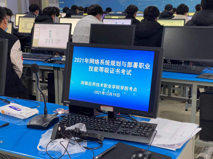 2021年12月19日下午2:00-5:00在E425机房进行了我院首次网络规划与部署1+X技能证书考试,来自计算机网络技术专业20级的50名学生参加了考试。由信息工程学院网络技术专业郭璇老师、张振平老师负责监考,锐捷公司特派巡考人员进行巡考及提供技术服务。历时3个小时,学生全部完成了单选、不定项选择、综合实操、设备清单填写等题目的填写及提交。