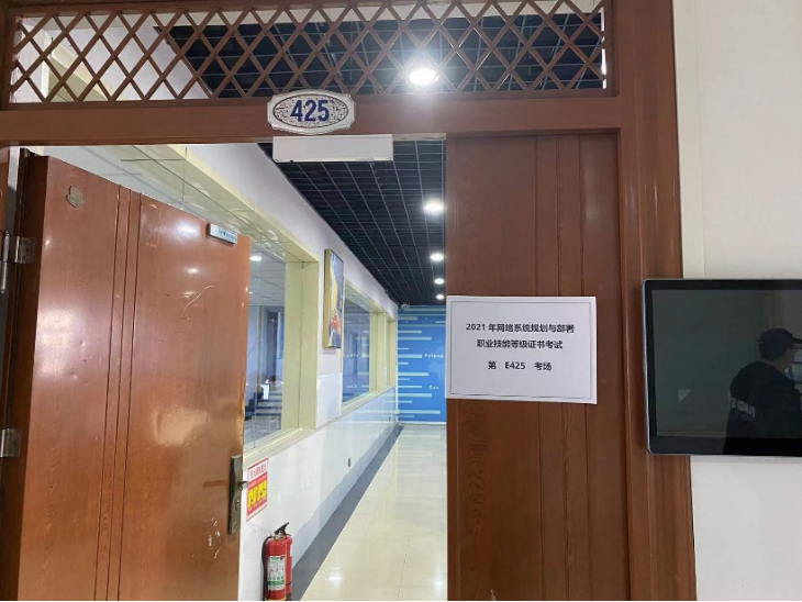 本次考试由福建中锐网络股份有限公司提供师生培训及技术支持,考试前企业人员通过线上对考点软硬件资源进行了验收考核,本院网络系统规划与部署考点满足1+X中级考试认证要求。E425机房课可容纳80名学生,前后共有4个监控摄像头,能服务于各类竞赛及考试,考试前,监考教师进行了监控录像测试及人脸识别系统功能检测,均达到了考证要求。