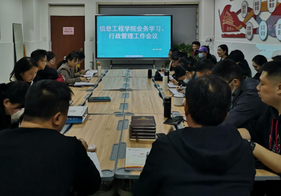 为做好新生返校后的教育教学工作,2021年10月19日下午,信息工程学院全体专兼职教师,辅导员等,分别于西校区E315和东校区519机房召开了教育教学工作会议。本次会议由信息工程学院院长王雷主持召开。