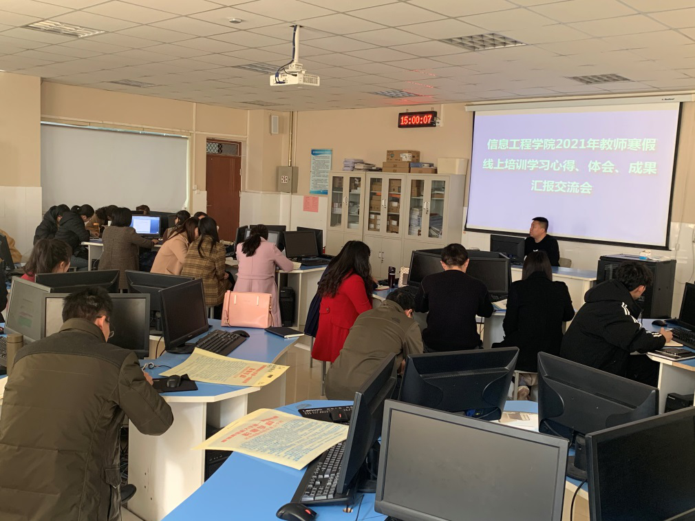 为提高九游体育教师教育教学能力,助力“双高校”相关任务建设,根据学校安排, 信息工程学院全体教师于2021年寒假期间参加学习了以“寒假教师线上培训”为主题的培训学习,为巩固寒假全体教师线上培训成果,进一步推动学校双高建设、三教改革、课程思政等工作持续深入进行,信息工程学院于2021年3月4日下午在网络实训室E416开展了教师寒假线上培训学习心得分享交流会。