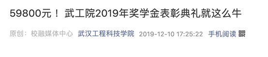 据武汉工程科技学院微信公众号消息,12月9日下午,武汉工程科技学院在三教报告厅举行了2019年奖学金表彰典礼。