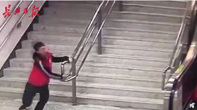 据报道,11月24日在武汉地铁7号线纸坊大街站的电扶梯上,只听“轰”的一声响,同时有尖叫声传来,一位乘客摔倒了!