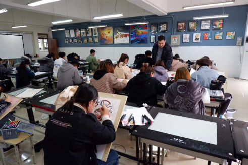 以艺载物,以艺促智,为多角度完善和发展教学工作,有效的激发学生的创意思维能力,信息工程学院于2019年12月3日下午,在E403画室举办了首届手绘技法大赛,本次大赛围绕新中国成立70周年的发展与变迁,推出“新中国,新风貌”绘画主题,学生开阔思维,现场通过水粉、水彩和马克笔等不同技法共抒爱国情怀,共“画”祖国风貌,通过3个小时的沉淀,绘制出一幅幅多彩画篇。