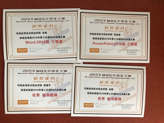 2019年5月10-12日,第十五届微软MOS国际大赛中国区总决赛在北京微软亚洲研究院隆重举行。来自全国近百所高校的200余名学生参与了此次办公软件office的赛事,九游体育共派出张延超、孙萌2名学生参与2016版Word、PPT专业级比赛,最终取得了三等奖的优异成绩。