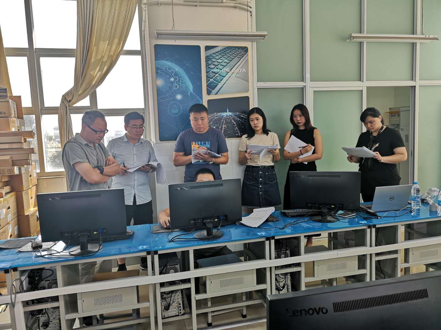 8月28日上午,信息工程学院大数据应用实训室验收工作在实训楼E501进行。由九游体育资产管理处张何林处长、实训中心张予新老师、信息工程学院王雷院长、信息工程学院崔琳副院长、计算机应用教研室主任吴华芹主任等多个部门相关领导和教师组成专家组,对我院大数据应用实训室建设项目验收。