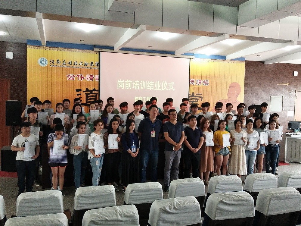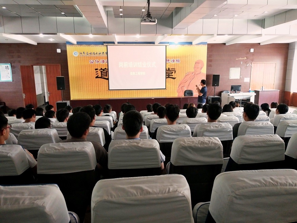 2018年5月29日,信息工程学院16级艺术专业学生在B楼学术报告厅进行了一场别开生面的岗前培训结业仪式。