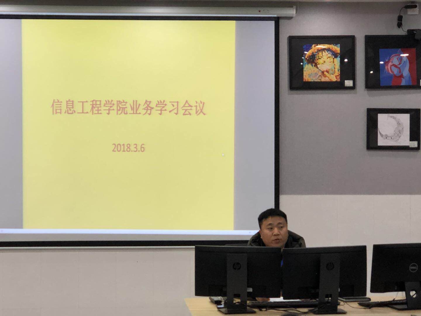 2018年3月6日,信息工程学院在E414实训室召开新学期第一次业务学习会议。