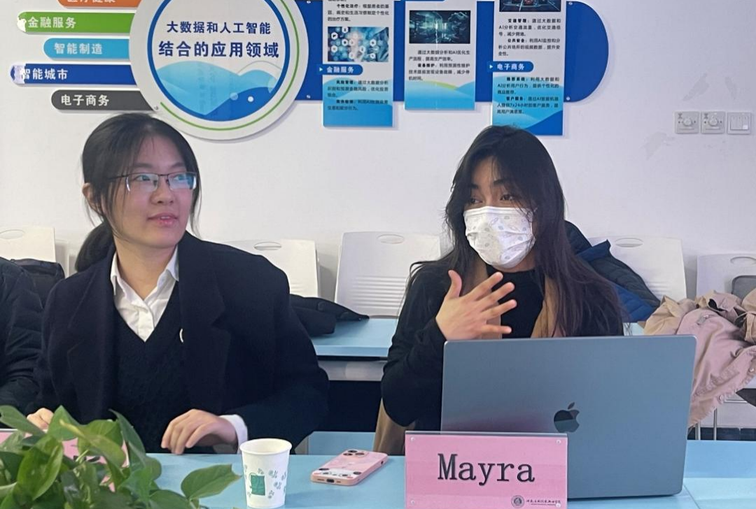 教师研讨结束后,师生交流活动于D303教室随即开展。加方代表于主任通过视频生动展示了加拿大的风土人情,系统介绍了中外合作办学项目的核心优势、加拿大高校留学政策及国际人才职业发展路径,外籍教师代表则针对本学期授课情况、学生课堂表现进行了简要总结,深入分享了加方课程的教学特色及丰富的海外学习资源,互动环节中同学们热情高涨。