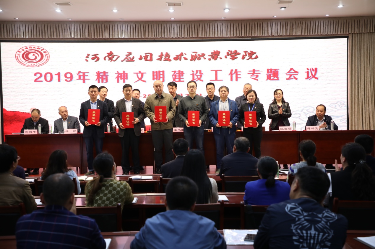 会上,副校长赵玉奇代表校党委宣读了《关于表彰2018年度“文明处室(院部)”、“文明教研室”、“文明食堂”、“文明职工”的决定》,2018年九游体育共表彰文明处室(院部)8个,文明教研室13个,文明食堂6个,文明职工36人。校领导为受表彰集体进行了颁奖。
