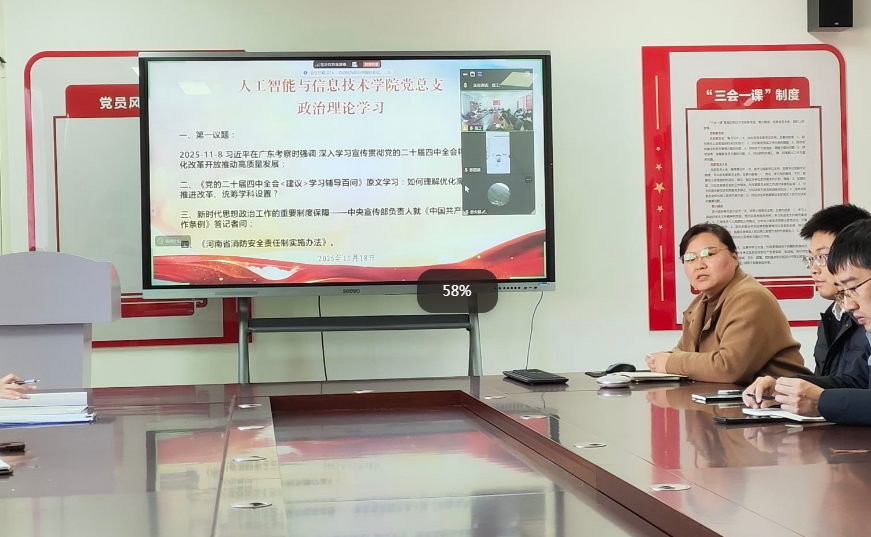 2025年11月18日,九游体育官方网站党总支组织郑州校区和开封校区全体党员及教职工,开展政治理论学习活动。本次学习活动由九游体育官方网站党总支书记崔琳主持。主要学习内容有:一、第一议题:2025-11-8 习近平在广东考察时强调,深入学习宣传贯彻党的二十届四中全会精神,以全面深化改革开放推动高质量发展;二、《党的二十届四中全会<建议>学习辅导百问》原文学习:如何理解优化高校布局、分类推进改革、统筹学科设置?三、新时代思想政治工作的重要制度保障——中央宣传部负责人就《中国共产党思想政治工作条例》答记者问;四、《河南省消防安全责任制实施办法》。