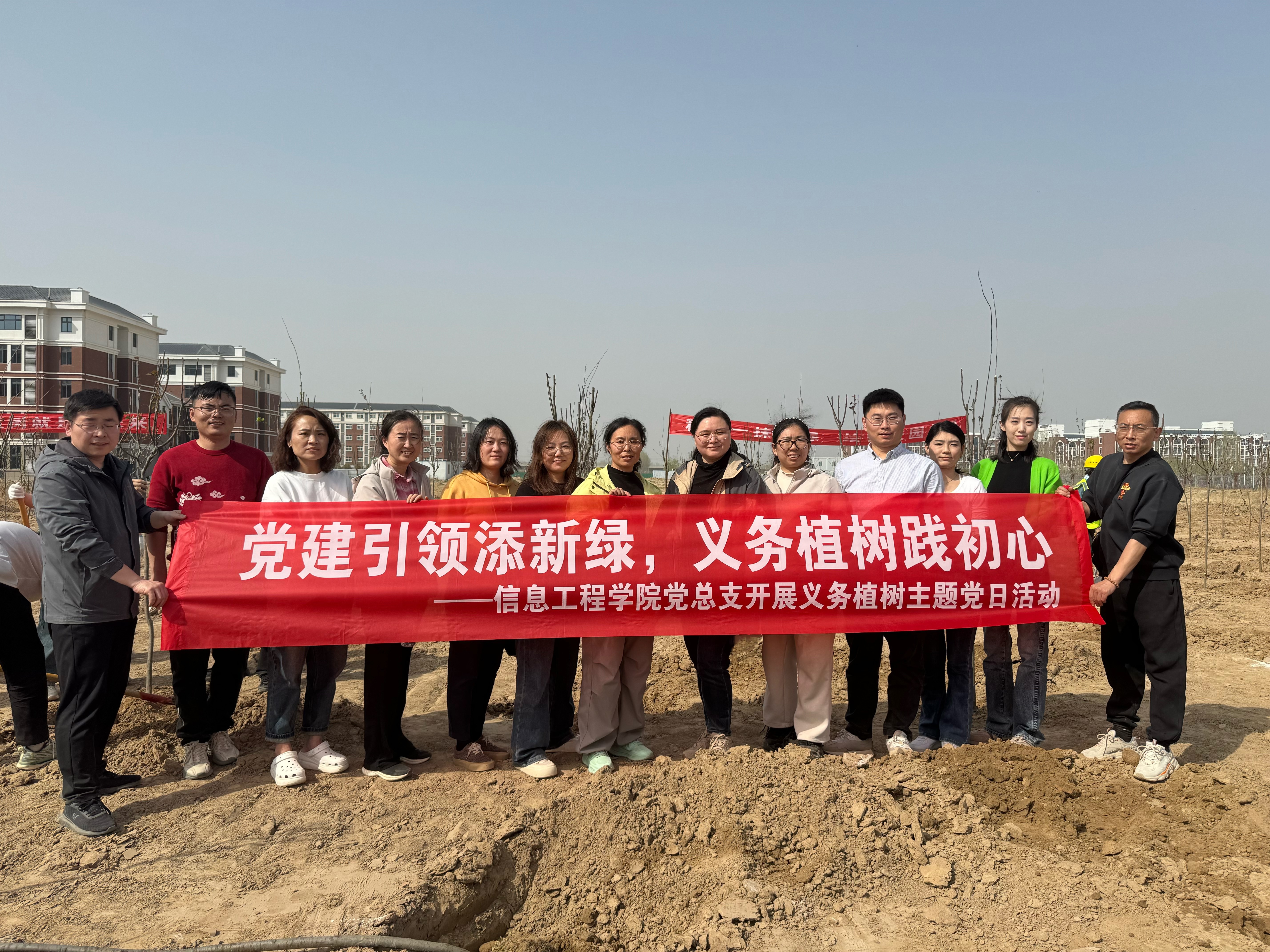 春和景明暖阳日,植树添绿正当时。为深入宣传贯彻习近平生态文明思想,进一步弘扬雷锋精神和“奉献、友爱、互助、进步”的志愿精神,结合学雷锋实践活动,2025年3月25日,信息工程学院党总支书记崔琳率43名党员、团员代表,在开封校区北院开展“党建引领添新绿,义务植树践初心”义务植树主题党日活动,共同以实际行动为应院增添新绿,助力生态文明建设。