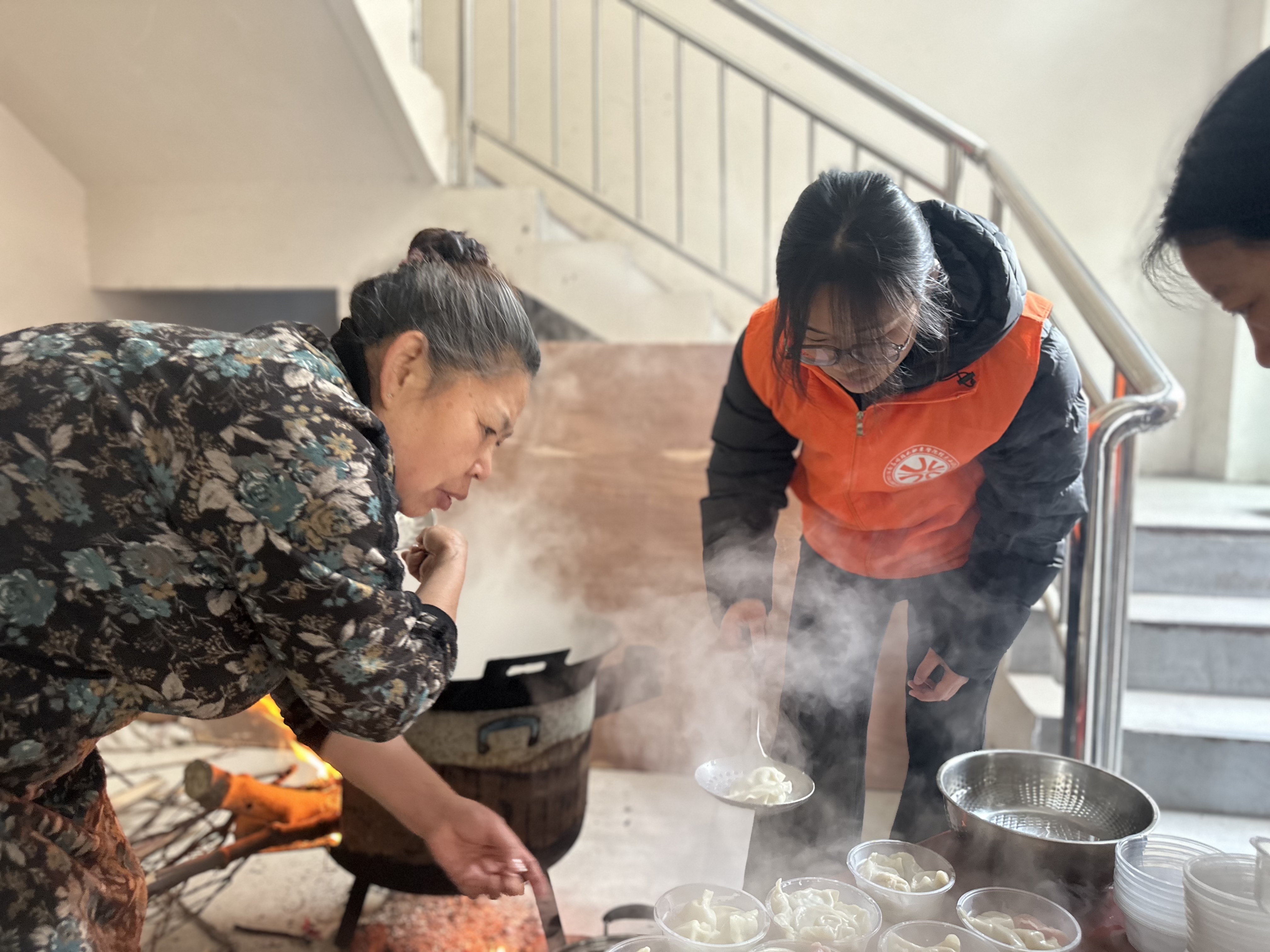 随后,我院青年和社区工作人员一起把煮好的饺子,送到社区居民手中,询问他们的身体状况和生活情况,叮嘱天气渐寒,注意保暖和用气、用电安全。