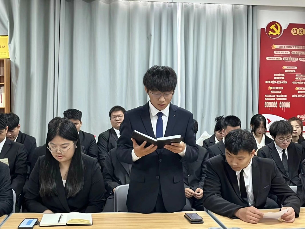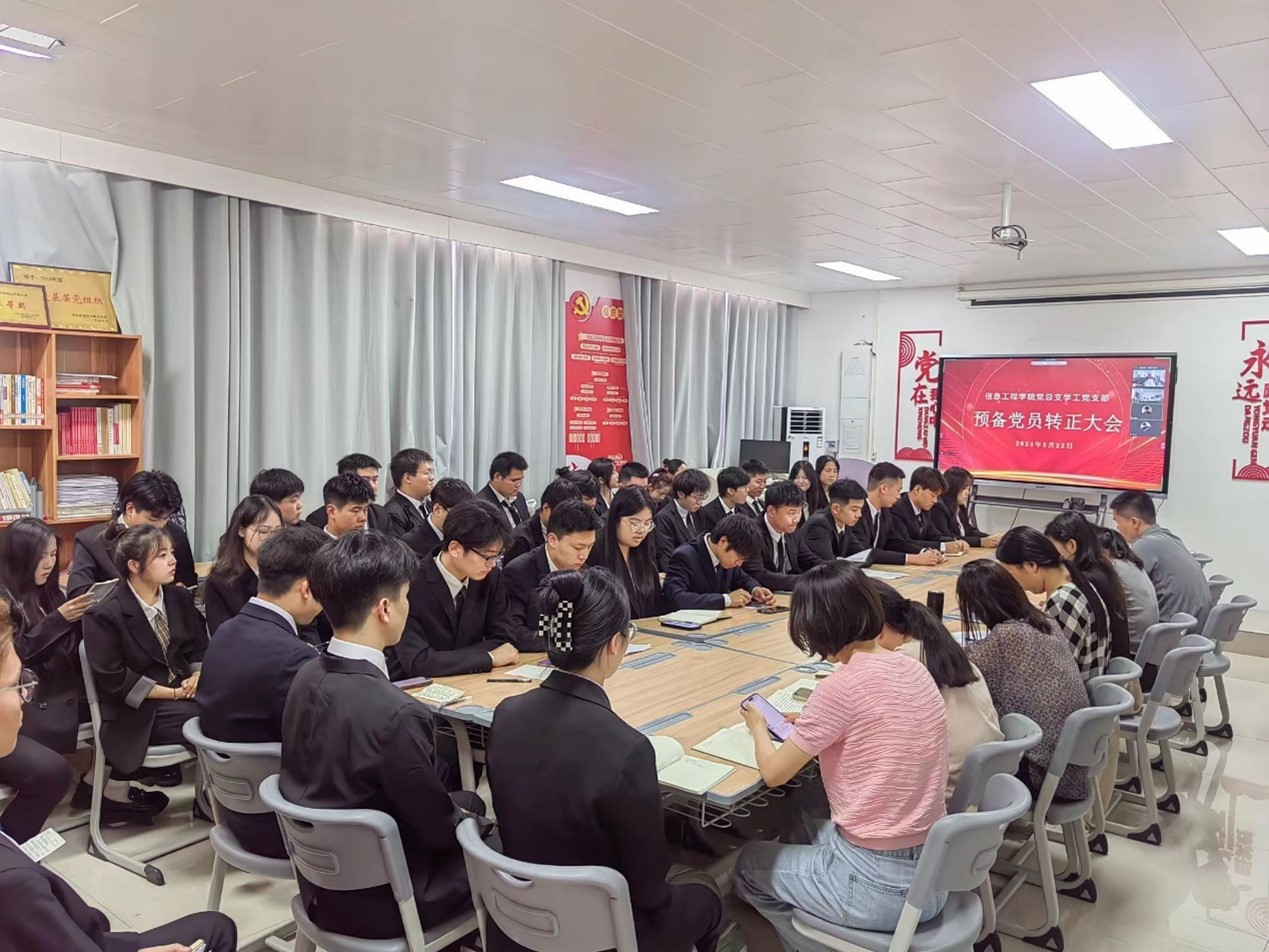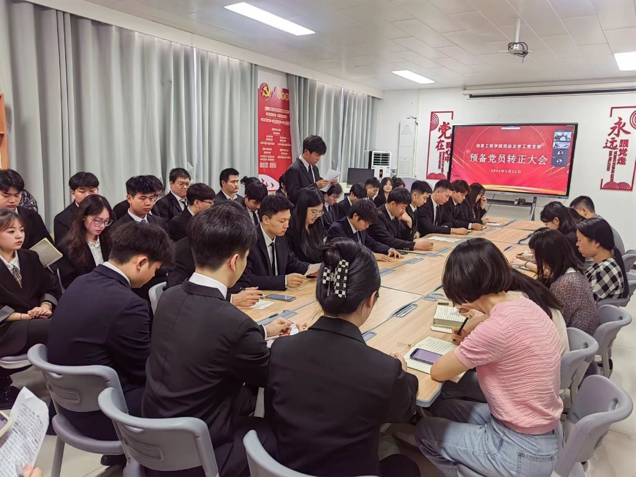 为进一步壮大党员队伍,增强党组织的活力与生机,2024年5月22日,信息工程学院党总支学工党支部召开预备党员转正大会,讨论关于苗明慧等39名预备党员转正事宜。会议由学工党支部书记蒋欣哲主持,支部全体党员参加会议。