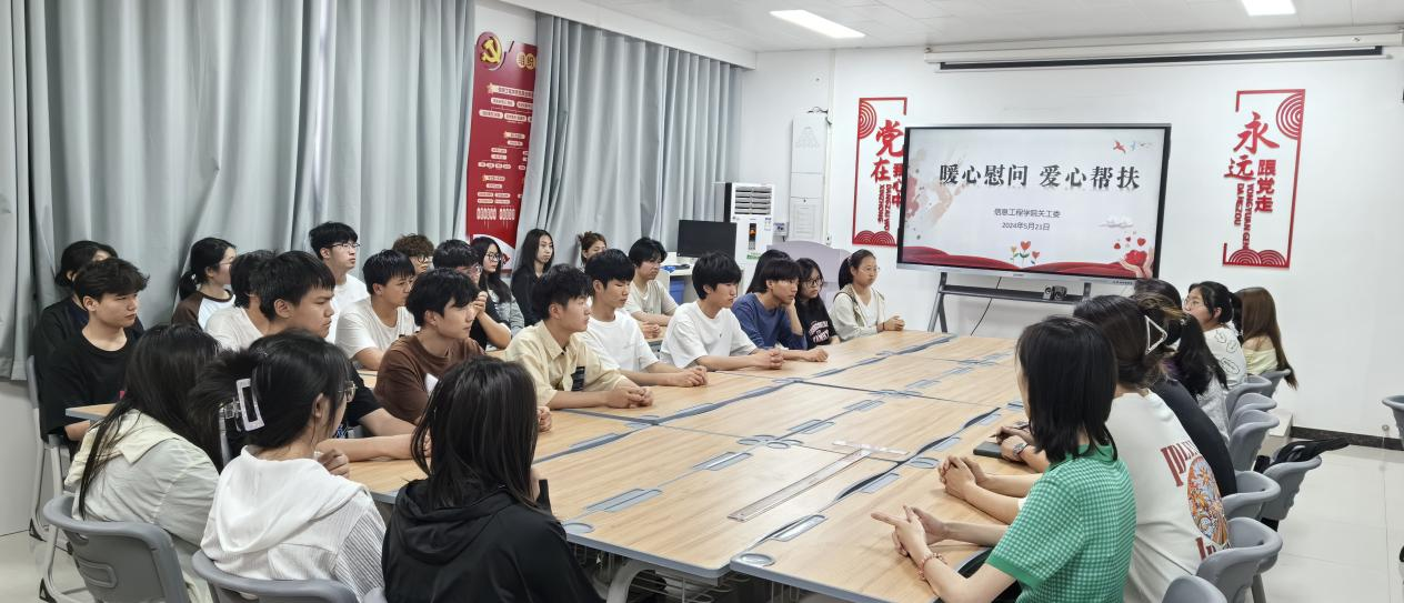 为贯彻落实党的二十大报告和习近平总书记关于进一步做好关心下一代工作重要指示,充分发挥学院关工委和“五老”优势,信息工程学院关工委在2024年5月21日于郑州校区A514开展关爱贫困学生帮扶活动,2023级部分贫困生代表参加活动。