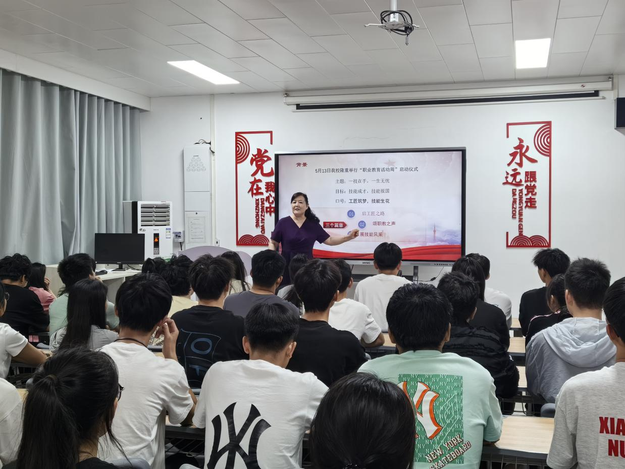 为大力弘扬新时代工匠精神,充分发挥工匠精神的榜样示范和典型引领作用,使广大学子深刻认识到技能型人才对于推动经济社会发展的重要作用,培养高素质的技术技能人才,2024年 5月21日,信息工程学院关工委副主任黄群老师于郑州校区A514开展以“一技在手,一生无忧”专题讲座。