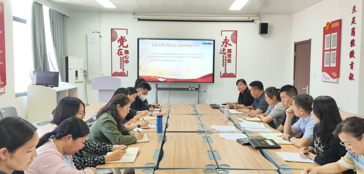 2024年5月7日,信息工程学院党总支组织东西校区全体党员及教职工,在西校区A514、东校区C314以腾讯会议视频连接,开展政治理论学习活动。本次学习活动由信息工程学院党总支书记崔琳主持,全体党员及教职工参加会议。主要学习内容有:1.5月1日出版的第9期《求是》杂志发表习近平总书记重要文章《组织动员亿万职工积极投身强国建设、民族复兴的伟大事业》;2.习近平寄语新时代青年强调 奋力书写为中国式现代化挺膺担当的青春篇章 向全国广大青年致以节日祝贺和诚挚问候;3.《中共中央办公厅 国务院办公厅关于建立领导干部应知应会党内法规和国家法律清单制度的意见》。