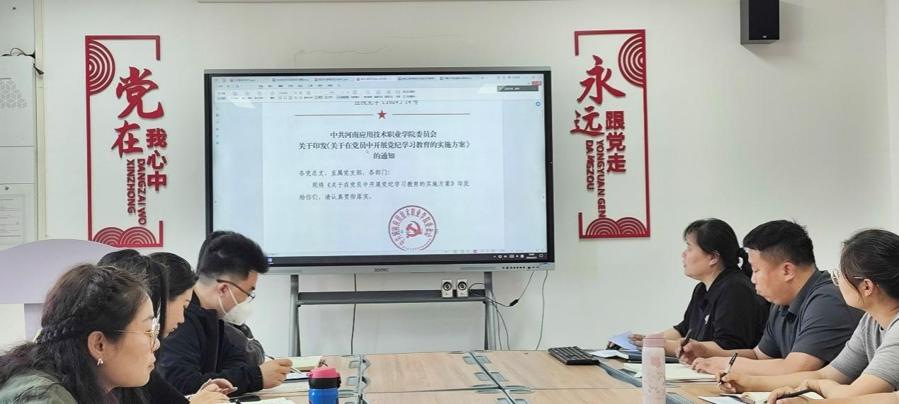 2024年4月23日,信息工程学院党总支在郑州校区A514、开封校区C314以腾讯会议视频连接,召开2024年党纪学习教育动员会。党总支书记崔琳主持会议,全体党员参加会议。