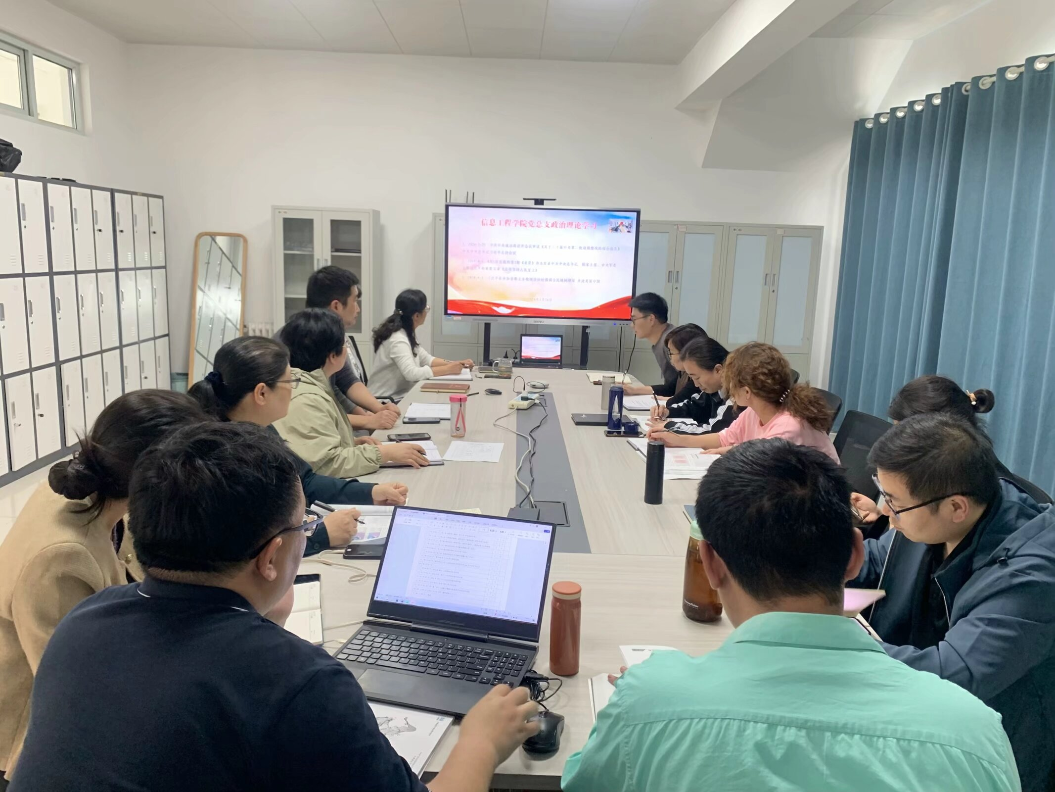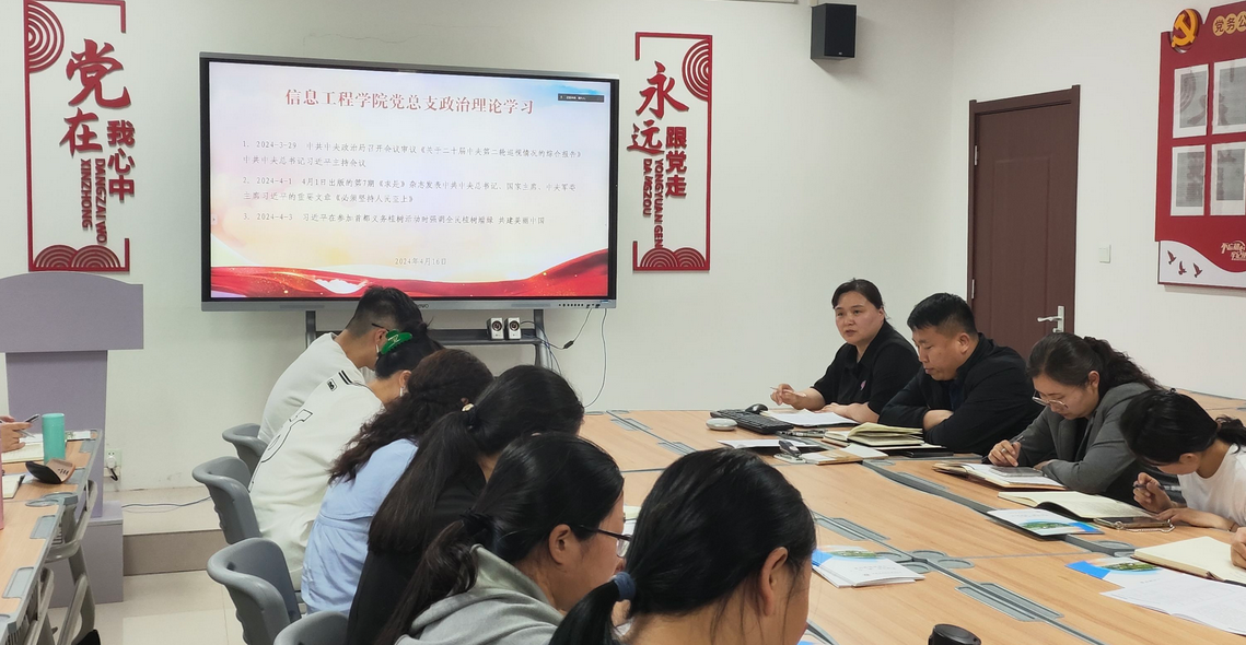 2024年4月17日,信息工程学院党总支组织东西校区全体党员及教职工,在西校区A514、东校区C314以腾讯会议视频连接,开展政治理论学习活动。本次学习活动由信息工程学院党总支书记崔琳主持,全体党员及教职工参加会议。主要学习内容有:1.2024-3-29中共中央政治局召开会议审议《关于二十届中央第二轮巡视情况的综合报告》中共中央总书记习近平主持会议;2.2024-4-14月1日出版的第7期《求是》杂志发表中共中央总书记、国家主席、中央军委主席习近平的重要文章《必须坚持人民至上》;3.2024-4-3习近平在参加首都义务植树活动时强调全民植树增绿共建美丽中国。