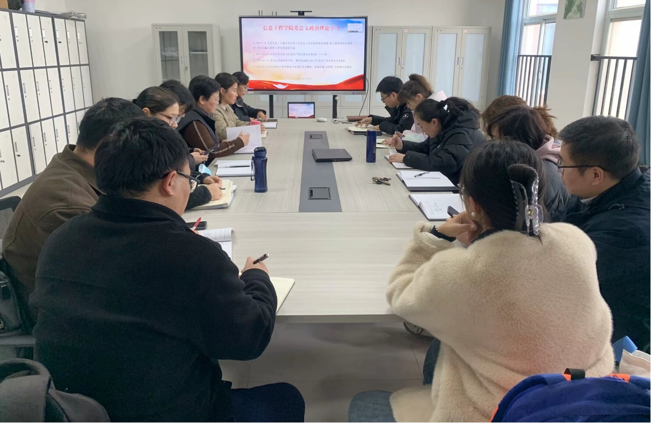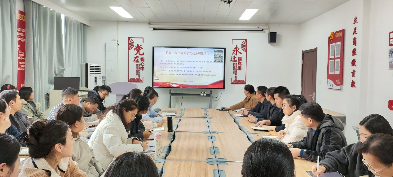 2024年3月5日下午,信息工程学院党总支在郑州校区A514、开封校区A314开展政治理论学习活动,学习内容主要有:1.2024-1-8-习近平在二十届中央纪委三次全会上发表重要讲话强调:深入推进党的自我革命 坚决打赢反腐败斗争攻坚战持久战;2.2023-12-19-中共中央印发《中国共产党纪律处分条例》(1-4章);3.2024-01-10党员应当如何学习好、遵守好新修订的《中国共产党纪律处分条例》;4.2024-01-10《中国共产党纪律处分条例》学习解读:准确把握《条例》总则修订的重点,全体教师积极参加活动。