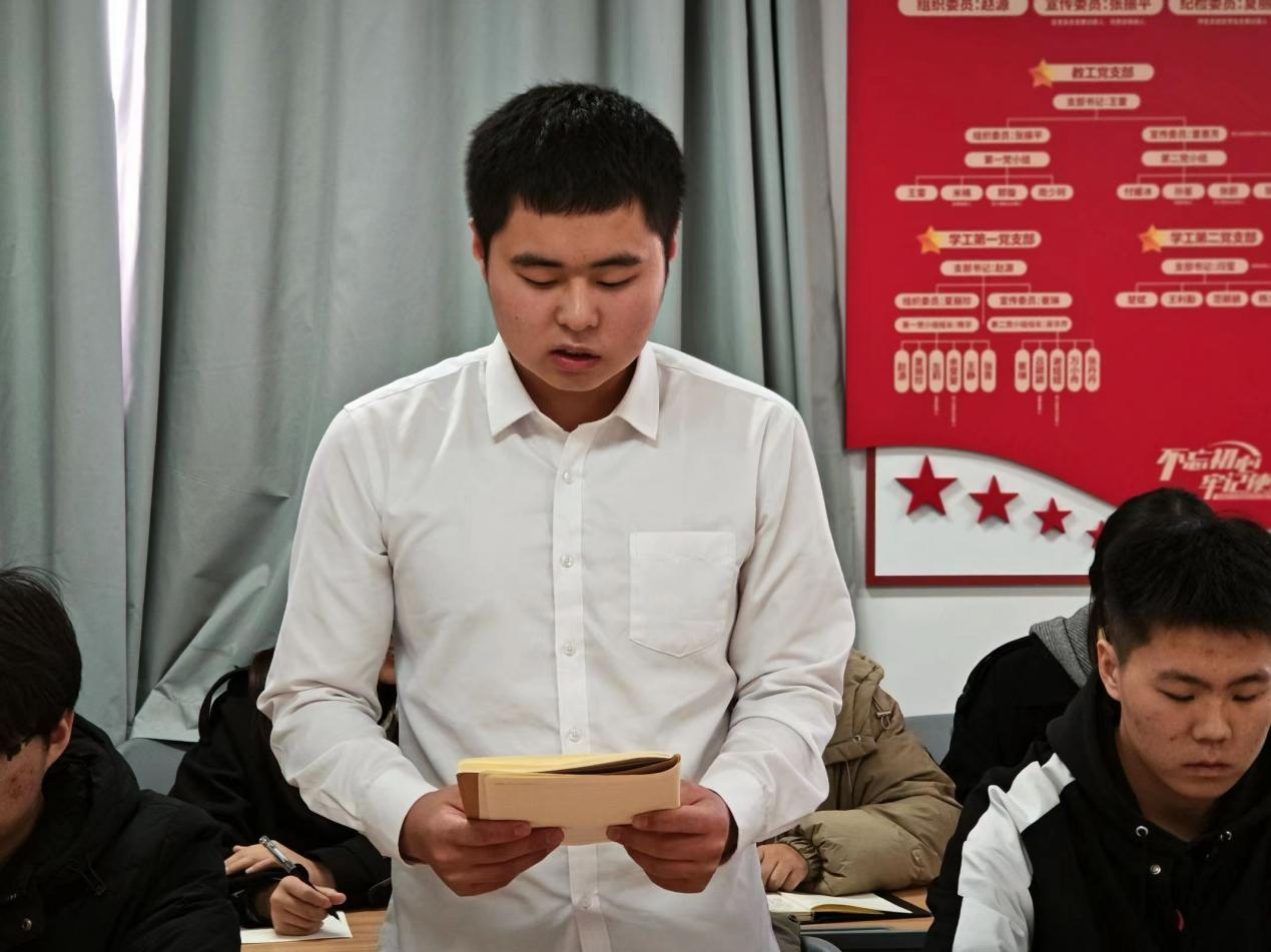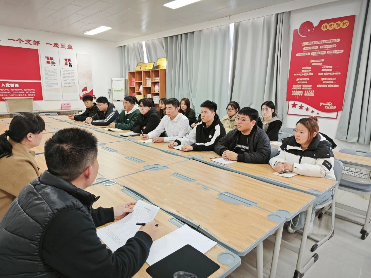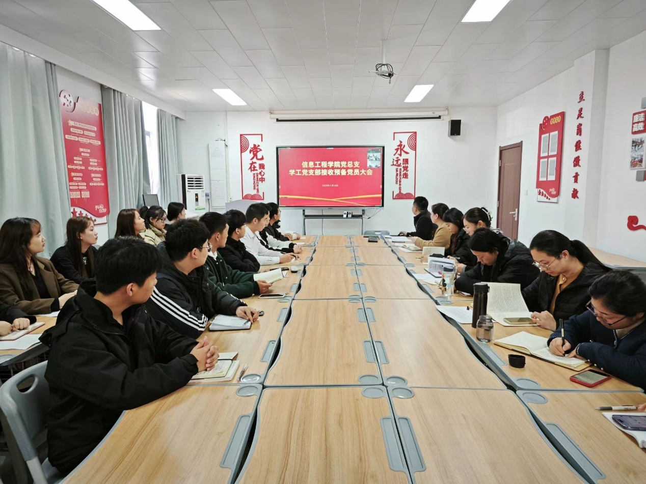 2023年11月16日,信息工程学院党总支学工党支部开展接收预备党员会议,会议由信息工程学院党总支学工党支部书记蒋欣哲主持,全体党员参会。