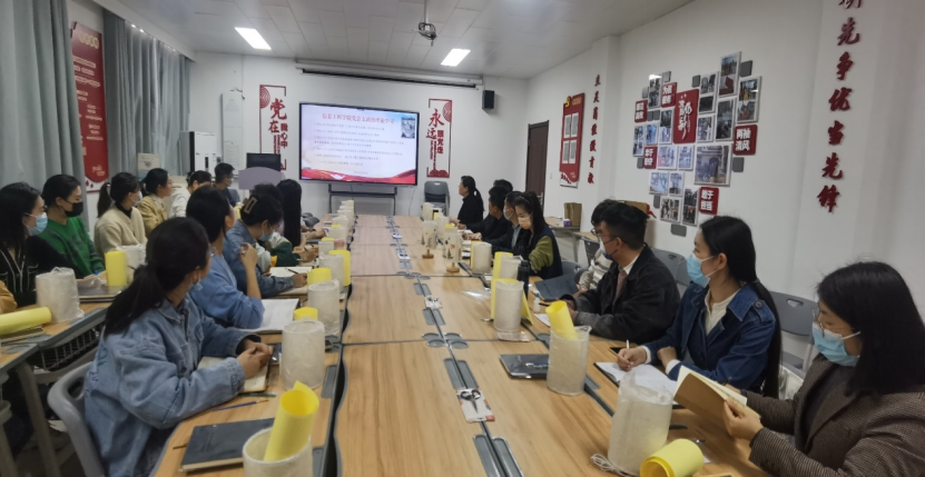 为了深入学习贯彻党的二十大确定的目标任务,筑牢师德师风防线,规范教师队伍建设。2023年3月7日下午2点,信息工程学院党总支组织东西校区全体党员及教职工,在西校区A514、东校区A314会场,以腾讯会议连接,开展政治理论学习活动,集中学习了:1.中国共产党第二十届中央委员会第二次全体会议公报;2.求是2023-5期新时代党和人民奋进的必由之路;3.习近平在中央党校建校90周年庆祝大会暨2023年春季学期开学典礼上发表重要讲话强调:坚守党校初心 努力为党育才为党献策;4.习近平在参加江苏代表团审议时强调 牢牢把握高质量发展这个首要任务;5.揭掉公款旅游“隐身衣”。本次党政学习由信息工程学院党总支书记崔琳主持,全体党员及教职工参加会议。