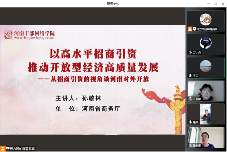 实施“十大战略”是省委立足加快建设现代化河南,持续落实习近平总书记视察河南重要讲话重要指示的具体行动,是实现“两个确保”奋斗目标的战略路径。为引导全体党员关注省委部署的关键性、战略性、全局性工作,为现代化河南建设贡献教育力量,11月29 日下午,信息工程学院党总支组织全体教师集中观看河南干部网络学院11月份课程《以高水平招商引资推动开放性经济高质量发展》,本次课程由河南省商务厅孙敬林主讲。