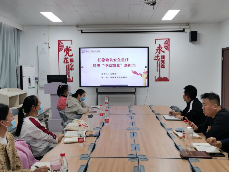 实施“十大战略”是省委立足加快建设现代化河南,持续落实习近平总书记视察河南重要讲话重要指示的具体行动,是实现“两个确保”奋斗目标的战略路径。为引导全体党员关注省委部署的关键性、战略性、全局性工作,为现代化河南建设贡献教育力量,10月19日下午,信息工程学院党总支组织全体党员教师集中观看河南干部网络学院10月份课程《扛稳粮食安全重任 展现“中原粮仓”新担当》,本次课程由河南省农业厅副厅长王俊忠主讲。