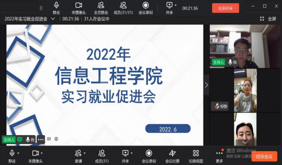 为贯彻落实上级文件要求和相关会议精神,进一步推进学生实习就业工作,6月6日,信息工程学院召开2022届毕业生就业工作与2023届毕业生岗位实习促进会。会议由学工办主任闫莹主持,学院党总支书记楚斌、院长王雷、副院长崔琳、所有岗位实习指导老师及相关辅导员参会。会议通过钉钉在线上召开。