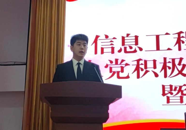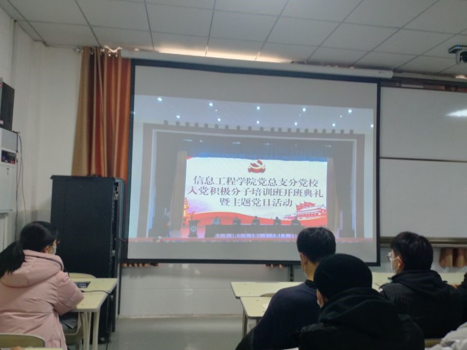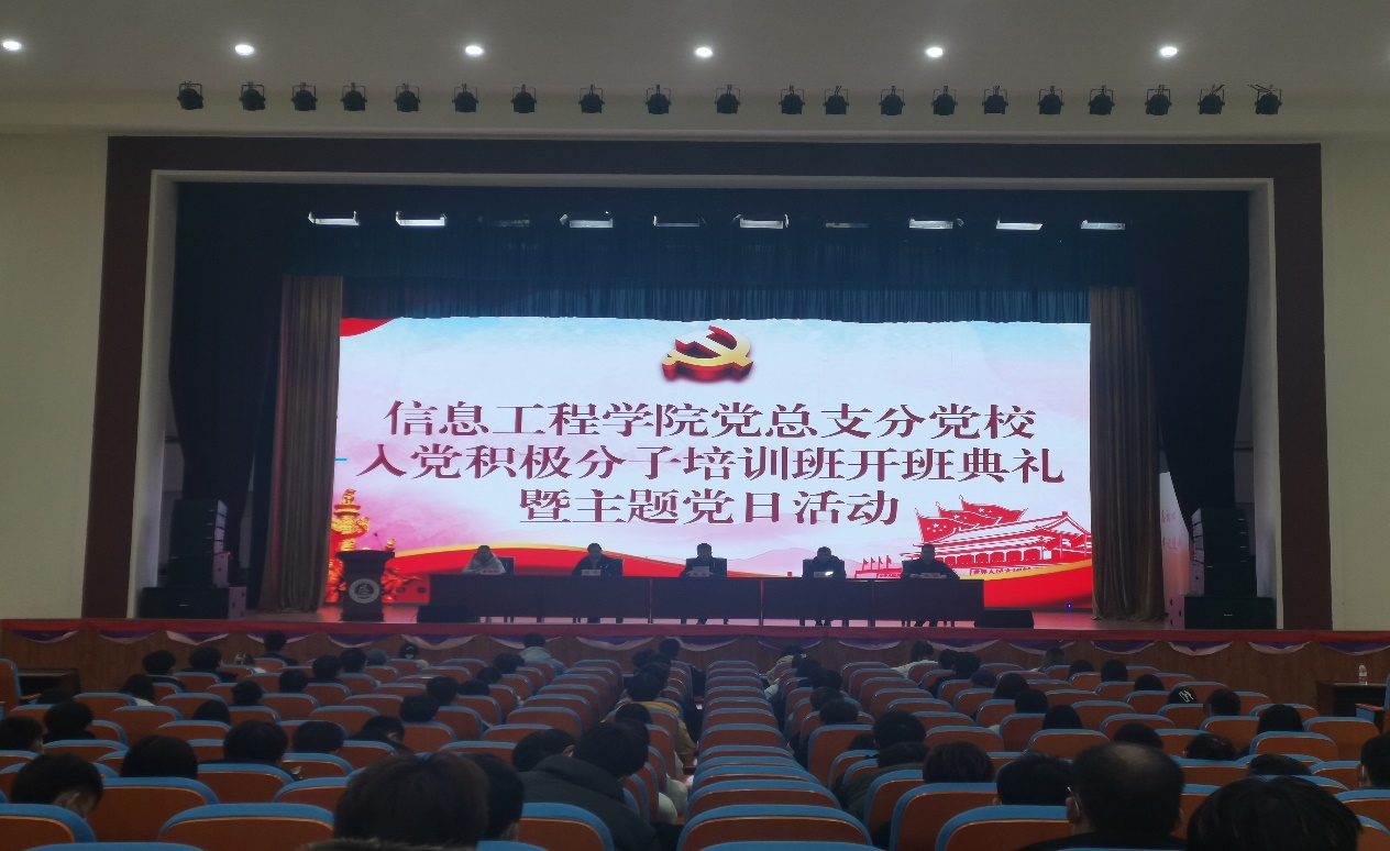 信息工程学院西校区在大礼堂如期举行入党积极分子培训班开班典礼,赵源同志主持此次开班仪式;东校区在实训楼302教室通过线上直播的方式与西校区一同开展,由闫莹老师主持进行。