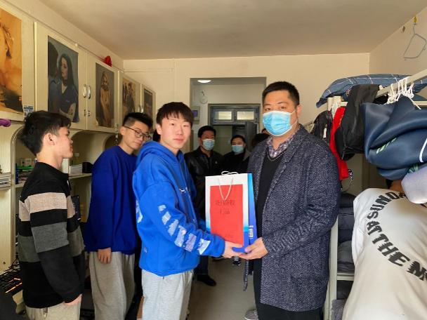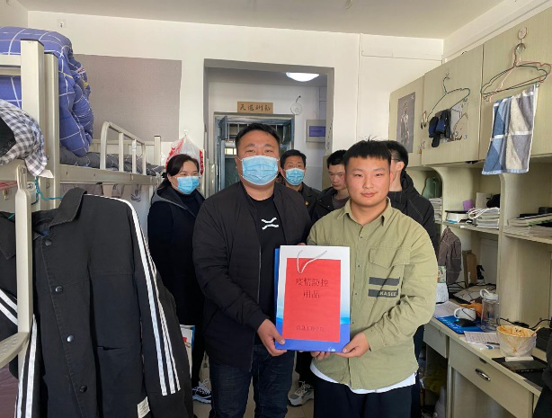 为进一步深化党史学习教育,扎实做好我为群众办实事专项工作,持续推进疫情防控常态化,切实把疫情阻断在校园之外,信息工程学院把学生身体健康放在第一位,同时守护当前来之不易的疫情防控成果。2021年11月23日中午,信息工程学院党总支书记楚斌带队,院长王雷、副院长崔琳和团总支书记赵源等一行数人,深入学生宿舍为学生发送防疫物资。