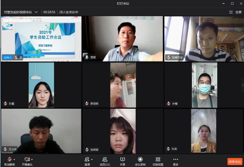 2021年9月17日下午4点,信息工程学院东西校区全体辅导员召开2021年学生资助工作专题会议,安排布置2021年国家奖助学金和评先评优等工作事宜。会议由学工办主任闫莹主持。