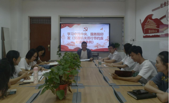 2021年5月25日下午,信息工程学院党总支组织全体专兼职教师,辅导员等,分别于西校区E315和东校区519机房集体学习了《党政机关厉行节约反对浪费条例》。西校区会议由党总支宣传委员张振平主持,东校区会议由办公室主任常昆主持。