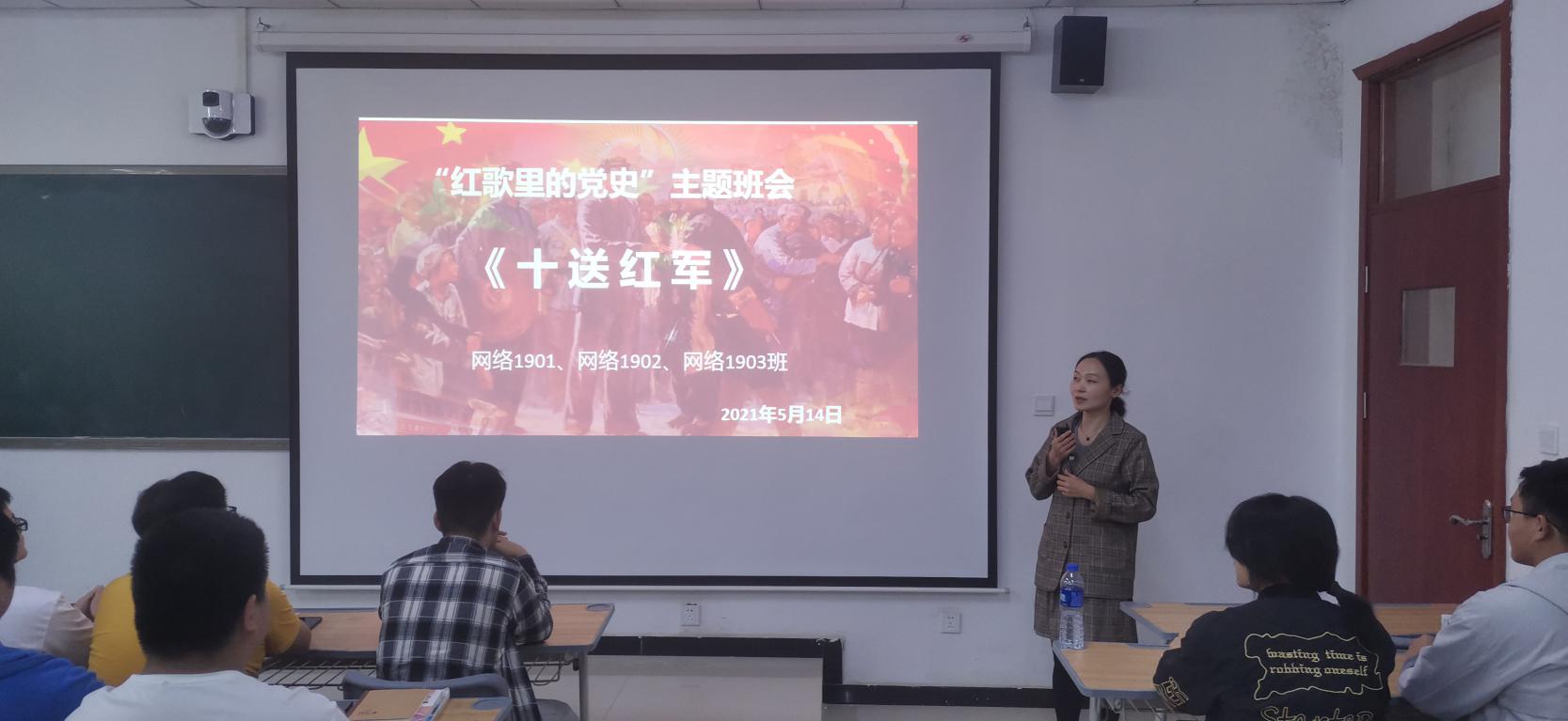 为加强理性信念教育和革命传统教育,营造浓厚的宣传教育活动氛围,增强学生热爱党、热爱祖国的感情,信息工程学院网络19级专业特邀请思政课张梓杨老师于5月14日在SC104教室为学生讲解《十送红军》这首红歌背后的故事。