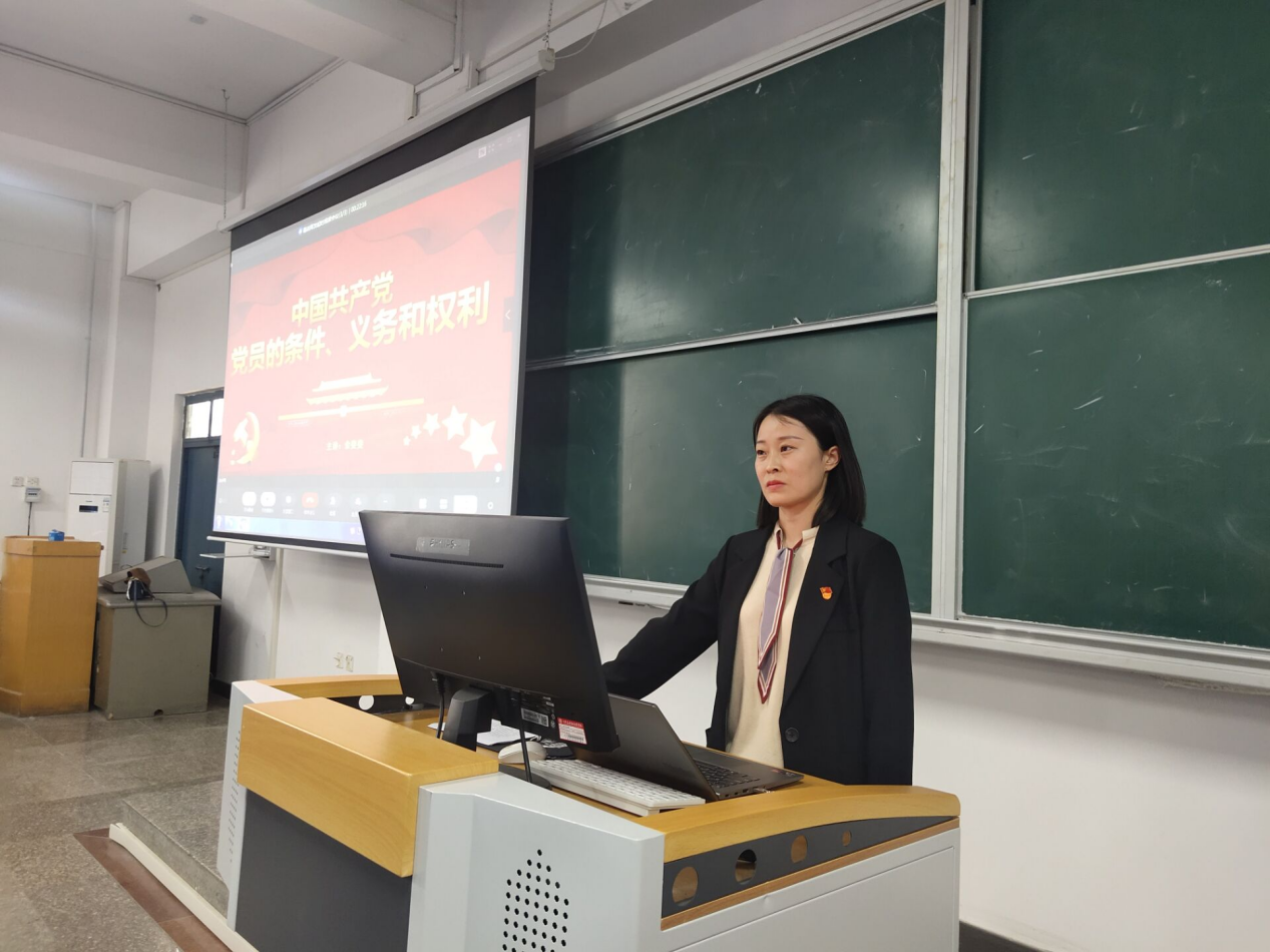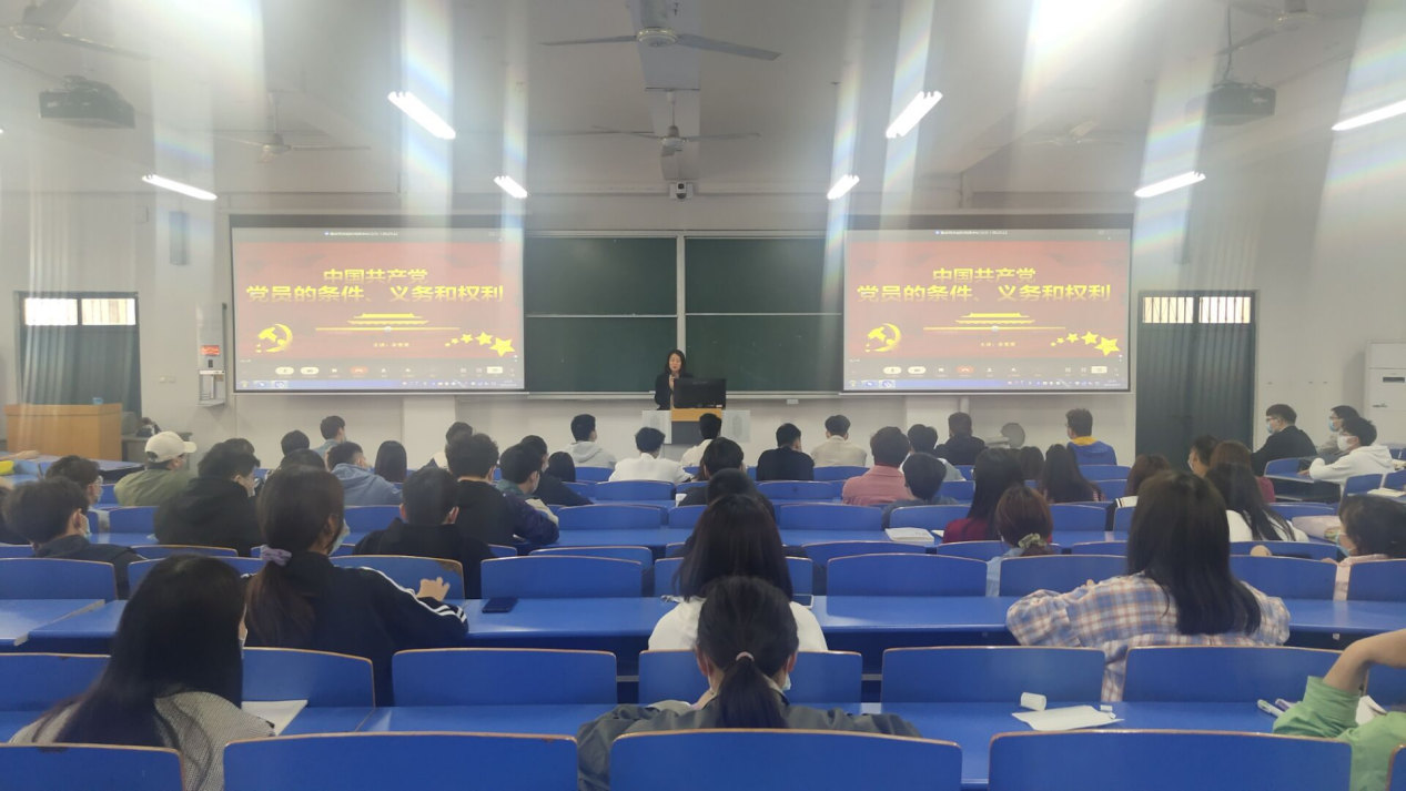 为了进一步将强入党积极分子对党的基本理论知识系统教育,提高入党积极分子的理论水平,确保党员的质量,信息工程学院学生支部党员余斐斐同志于4月15日下午在教学楼B201为东西校区19级全体入党积极分子讲述了党课《党员的条件、义务和权利》。