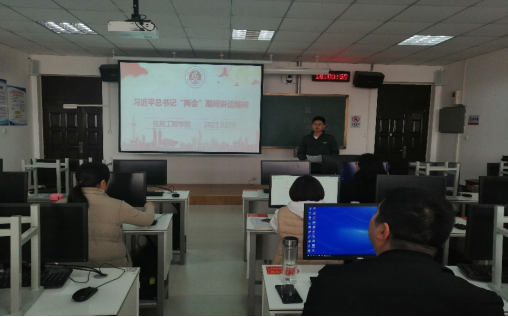 2021年3月16日下午,信息工程学院全体教职工(学生口领导、辅导员、班主任除外)分别在西校区E315和东校区519机房进行政治学习,本次学习的主要内容为:习近平总书记在“两会”期间讲话精神;西校区学习会议由信息工程学院院长王雷同志主持。东校区学习由学院办公室常昆主任主持。