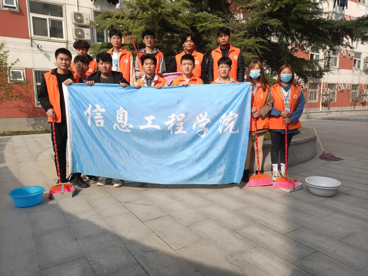 信息工程学院团学会成员身穿学院马甲,拿上劳动工具,一心投入到爱绿护绿行动当中!他们认真清理了花坛中的垃圾,落叶;擦拭花坛,盛水浇水。辛勤的团学会成员们不怕苦不怕累,在劳动中成长,在劳动中欢乐。
