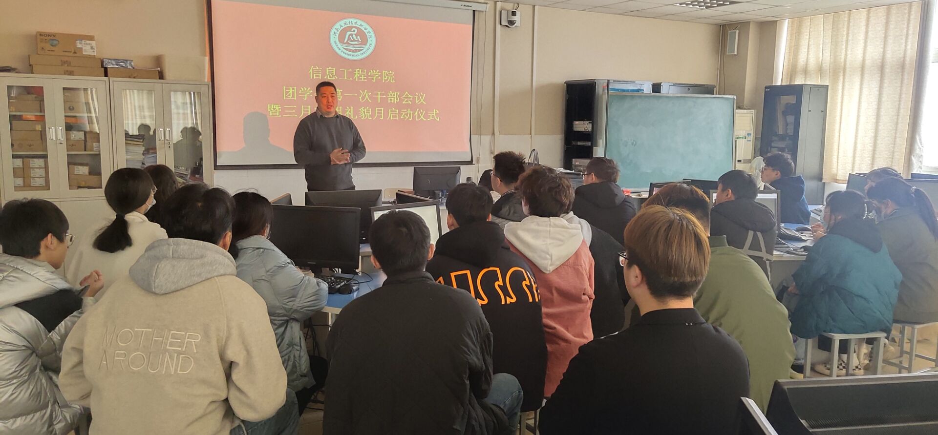 2020年3月3日中午,在E楼416教室召开了新学期第一次干部会议,参加会议有信息工程学院团总支书记赵源老师和信息工程学院团学会19级全体学生干部。本次会议主要有三点内容。